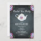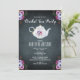 Möhippa Tea Party-inbjudan i vintage lila med söt blommigtar och tekanna design.