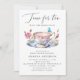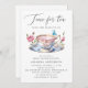 Vänner och familj i inbjudan till en underbar möhippa med denna vackert illustrerade inbjudan till tefest. Den här utformningen har en vattenfärg i tekopp med mjukt rosa ros och en känslig fjäril, och ger en ljuv och fredlig känsla för firande. Skriptet "Time for Tea" överst ger en charmerande beröring och fångar perfekt temat för evenemanget. Denna inbjudan är idealisk för trädgårdsmötena party, vintage-inspirerade duschar eller mysiga eftermiddagssammankomster. Du kan enkelt anpassa all text så att den innehåller din händelseinformation. Och det finns också en digital version tillgänglig för utskrift i hemmet eller sändning av online. Perfekt för brider som kärlek blommigt detaljerat och ett mjukt, romantiskt stil.