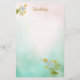 Blommigt Teal Blue Bröllop Stationery Notes White Brevpapper