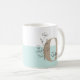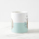 Ett trendig fetstilt teal och blått anpassade kaffe mugg. Hand plockade blommor och fet inledning med manustypografi namn. Den här chicens elegant mugg gör en underbar gåva till henne.