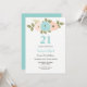 Blommigt Teal & Peach 21:a födelsedagsinbjudan Inbjudningar
