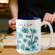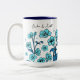 Cute Blue on White Blommigt Design Mugg, Inscription with Namn, PERSONLIG The Mugg, with elegant script skriftlig, Loely free flowing Blommigt Design, in shades of Blues, Add your own namn or namn of älskones using the EDITING VERKTYG On the Product Page of this product, njut av din Shopping Äventyr! Artist Tanya Arseneau Nanniesfineart