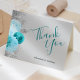 Det romantiska bröllop-tacket du-kortet lämnar kant har en blommigt med vattenfärg av turkoser som trimmas med silver faux glitter. Ord "Tack" visas i handskriftsskript för turkos, med namn nedan i färgat grått-färgerplatkteckensnitt, på en lätt grått-bakgrund.