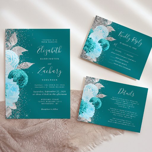 Floral Turquoise Silver Glitter Teal Wedding SuiteDesignad av Akhates Designs