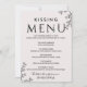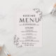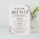 Den här blommigtens typografi-kyssmeny är perfekt för en elegant bröllop-mottagning. Den romantiska designen har en enkel text som dekoreras med blommor, botaniska kanter och en subtil bakgrund.