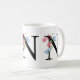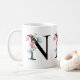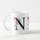 Ett personlig kaffe mugg med monogrammet brev ’N’, med dekorativ vattenfärgsfärgad blommigt och bladbilder. Anpassa det enkelt med ditt namn eller skapa en unik gåva till dina nära.