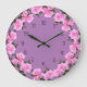 Elegant rosa ansikte blommigt väggavtagningsklocka designad med blommor från rosa ros i en rund stil-mönster och klassklocknummer designad som en badrumsklocka, köksklocka eller väggavtagarklocka.