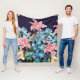 Blommigt vågrät gräns. Lilies and delphiniums Fleecefilt