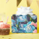 Blommigt vågrät gräns. Lilier och delfiner, isolerade på blå bakgrund. Vattenfärgmålning.