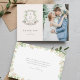 Blommigt Vapensköld Vattenfärg Monogram Bröllop Tack Kort