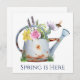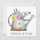 Skicka ett ljust och glatt hälsning med Blommigt Vår Watering Kan vattenfärgsfärglägga kollage med en vidsträckt biskon runt ett streck.