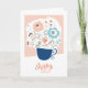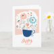 Blommor i ett födelsedagskort i tekopp.
