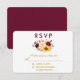 Elegant Watercolor Blommigt Bröllop OSA Card omfattar burgundy marsala ro, rosa ros, röd ros, solblommor och botaniskt grönämne. Guld-skript.