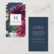 Blommigt Vattenfärg Burgundy Navy Blue Monogram Visitkort