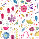 En modern vattenfärgsmålning av blommor och löv i rik färg spridd på vit bakgrund. En fantastisk samordning Spara datuminbjudan som du kan ändra till kostym i ditt eget firande. Originalkonst av Nic Squirrell.