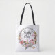 Den här väskan har en blommigt med eleganten "Brides Maid"-skript i mitten. En underbar och användbar gåva till brudtärnor för att bära essentiella ämnen på bröllopsdagen eller under möhippor. Koordinerar på ett utmärkt sätt den insamlingen av Bröllop i Blommigt.
