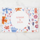 Modern botanisk blommönster i blått och orange på vit bakgrund. Originalkonst av Nic Squirrell.