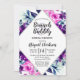 Förändrad Blommigt Watercolor Lila blommor Lövs Vines Silver Geometric Diamond Framed Brunch och Bubly Inbjudningskort för möhippa * Se min butik för att se hela samlingen!