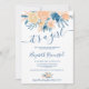 Blommigt vattenfärgsdusch för marinblå persikobebi inbjudningar