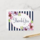 Ta en handskriven blommigt tackkort! Fånga romantik i syd med det vackra blomtack som du skickar ut ett kort med lush-färgblomning som ett komplement till lila- och lavendelfärgad mot en marin blå och vit rand-bakgrund. En blandning av skript som skriver ut ge på kortet med en charm. Tack vare vykort är ett ekonomiskt alternativ till hälsningskort när du vill skicka en snabbanteckning till vänner, familj och kunder. Tack för att vykort är underbara för många tillfälle... Företag Bröllop och möhippor Bekväma personliga anteckningar Bekräftar gåvor Bifogade till basket, godis påsar, party favors Andra produkter och gåvor som du kan ha nytta av ... Märkre: lila och vitt, blommigt, blommor, lila tack, lila bröllop, tack, bröllop, tack, tack, tack till företag, vattenfärg