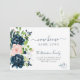 Elegant blommor nytt hem samma kärlek flytta-annonskort med en vacker mörk vid midnatt, marinblått och botaniskt botaniskt bouquet med grönt löv och ett trendig-handskriftsskript för kalligrafi.