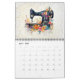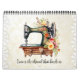 Sewing themed wall Kalender packad med vackra illustrationer av vintage syning av maskiner och lush bunches av blommor. Har en unik vattenfärgsbild i stil för varje månad, plus hölje och baksida. Det kan vara personlig med din egen text.