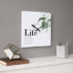 Den här väggklockan har en enkel design som packar en plånbok. Siffercirkeln är liten och obskyr, så "livets" citat är i centrum. Citatet lyder: "Livet handlar inte om att vänta på att stormen ska passera, det handlar om att lära sig att dansa i regnet. Det verkar vara ett underbart råd i dagens värld. Det översta hörnet har en utskriven bild av ett gäng handmålade violetta. De vita violeterna på den vita bakgrunden gör en subtil öga-fångstande påstående. Den enkla designen gör den till en perfekt som passar för vilket rum som helst i ditt hem.