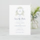 Blommigt Vit, blå Vapensköld Spara datum Inbjudningar