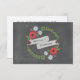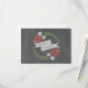 En bröllop OSA med en illustration av rött och blåa blommor och grönt placerad i en cirkel med banderoll i mitten för namn. Bakgrunden är en kartläggning som inspirerats. Leta efter matchande bröllopsinbjudningar och mer på Jill's Paperie.
