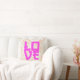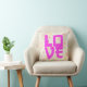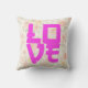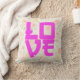 Romantiskt dekorativ kudde med det japanska kärlek-tecknet "愛" i fet shock rosa över en mjuk vattenfärgpeony mönster. Pastellbakgrund, feminin cottagecore-estetik, asiatisk-inspirerad blommigt. Perfekt för rum, vardagsrum, förskolor eller som en Valentingåva, bröllop eller en gåva på årsdagen.