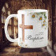Fira de värdefulla ögonblicken av baptism med vår Blommigt Watercolor Kor Baptism Coffee Mugg. Den här charmerande mugg har en vacker blommigt med vattenfärg och ett känsligt kor, skapar den perfekten för en nyfödd bebis-baptism eller ett doftande. Det är ett underbart sätt att ta till sig religiösans betydelse vid detta speciella tillfälle. Lägg till lite tillit och skönhet till din dagliga kaffrutin!