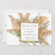Om er kommande ceremoni i bröllop kommer att hållas i söder eller på stranden, sätter detta färgstarka Spara datumkort (med kuvert) scenen med en vacker vattenfärgad blommigt bukett av pampasgräs i skuggor av guld, rosa och grönt. Texten "Spara datumet" är inställd i ett charmerande skriptteckensnitt med all annan text på kortets framsida och baksida som lätt kan anpassas till mallen. Den här Spara datum meddelande-designen är också tillgänglig som vykort och magnet.