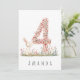 Gör lite av 4e födelsedagen extra speciell med det här charmkortet, med en delikat vattenfärgbild av nummer 4, vackert gjord från små, färgstarka pastellblommor. En söt bunny står bredvid numret, är lekfullt nibbling på blommarna och tillför en liten portion söthet och glädje till designen. Vare sig du är förälder, morföräldrar eller familj, kommer det här fantastiska kortet säkert att ge både den lilla och deras kära ett leende.