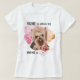 Det här är en söt skjortdesign för alla som kärlek deras Yorkie! Bilden är av en snygg och grått Yorkie-Hund med stort brunt ögon. Bilden placeras på en rosa av abstrakt och en vattenfärgad bakgrund med en subtil rosa ros-bild på ena sidan. En bukett med blommor från rosa och guld finns också vid högerna vid grund. Grått text ovanför och under bilden säger "HOME is where my YORKIE is is".