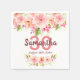 En romantisk och giftig napkin för 30års födelsedag party. Med contemporaryns rosa, persiko- och korallblommor i vattenfärgad färgad av dahlia. Eleganten vit som bakgrund. Mallar för namn, 30 år och ett datum. Födelsedatum eller datum för party. Namn är skrivet med ett skript för stil med burgundisk färgad. Ålder nummer 30 i koraller.