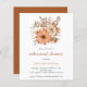 Blommigtar på hösten - inbjudan till repetitionsmiddag. Ett budgetvänligt SMALLER-alternativ på 4,5 x 5,6 tum. Finns på ett SEMI GLOSS 110 lb-kort LAGRAR eller ett SATIN AVSLUTAR 80 lb TINNER PAPPRA LAGRAR. Kuvert är ett valfritt extra. En bukett med vackra blommigtar och löv i brunn och grädde finns överst och snyggtens typografi är under vilket det är lätt att personlig detaljerna i din Rehearsal Dinner. En samordnande bakgrund för färgaden finns på baksidan.