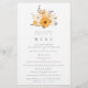 Gult Blommigts Foliage Bröllop Menu. En budgetpris storlek på 5,5 x 8,5 tum på en elegant på 110 lb LINEN lagrar - för en lyxkänsla till underbart värde är detta perfekt för menyer, inbjudningar och program osv. Detta storleka budgetalternativ finns också tillgängligt i andra pappra val. SEMI-GLOSS 110 lb-kortet lagrar har ungefär samma tjocklek som ett vykort, så fungerar också bra för inbjudningar. FELT 100 lbs papper är en färgad, INTE vit, vilket ger en kraftig tryckning. MATTE 80 lbs pappra lagrar är ljust vitt, för skarp utskrift, underbart för dina menyer och program, medan SATIN 80 lbs pappra är tunt och lätt, perfekt för höljen. OBSERVERA ATT ALTERNATIVET ENVELOPES ÄR EN LITEN STÖRRE STORLEK PÅ CIRKA 6,75" x 9". En bukett med blommigtar i den summerade färgaden finns överst och anpassar enkelt texten nedan. En koordinerande mörk grått-bakgrund är på baksidan. Du kan också ändra teckensnittet stil och färg och färgen längst fram och bakåt om du vill med alternativet Klicka för att anpassa ytterligare.