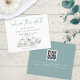 Ett ekonomiskt alternativ i BUDGET på en mindre storlek på 4,5 x 5,6 tum (110 lbs vikt), som är av samma tjocklek som ett vykort (är dock inte lämpligt för använda som vykort). OBSERVERA ATT DET FINNS EN PER lakan. Budgetpumpor Blommigtar QR Bröllop spara datum. Blommigtar och pumpor med tealblad och skriv skript för Spara datum och resten av texten som du enkelt kan anpassa med dina detaljer. Lägg till QR-koden på webbplatsen bröllop på baksidan eller ta bort den och texten på baksidan om det inte behövs.