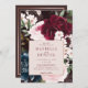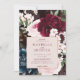 Fet, elegant och romantisk bröllopsinbjudan med våra målade vattenfärgade blommor i eleganten. En vacker fet blommigt med djup burgundi, rik marin blått och nyp blommor med accenter av lush grönt sage lövs och greenery. Blommigtarna är placerade i bakgrunden för att skapa denna djärva och elegant blommigt med information om bröllopsinbjudan som är perfekt innesluten med en rosa faux ro guld ram. Vattenfärgade blommigtar som målats med moodtologi.