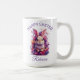 Vi presenterar vår färglösa pastellutformning med kanin Påskhare. Förbered säsongens glädje med en lekfull bunny med en lavendel till hans päls, omgiven av en spricka av färg-lush-lila, nyp och nyck av vattenfärgblommor av orange. Det här är perfekten som gör att du kan lägga till en festlig och visuell beröring till Påsk. All text kan redigeras. Anpassa designen verktyg från produktsidan eller användan om du vill ändra teckensnittet stilar eller färg. Påsk mugg har en söt bunny och Glad påsk med ditt namn. Redigera, lämna som det är eller ta bort helt.