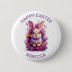 Vi presenterar vår färglösa pastellutformning med kanin Påskhare. Förbered säsongens glädje med en lekfull bunny med en lavendel till hans päls, omgiven av en spricka av färg-lush-lila, nyp och nyck av vattenfärgblommor av orange. Det här är perfekten som gör att du kan lägga till en festlig och visuell beröring till Påsk. All text kan redigeras. Anpassa designen verktyg från produktsidan eller användan om du vill ändra teckensnittet stilar eller färg. Den här knappnålen i Påsk har en söt bunny och Glad påsk med ditt namn. Redigera, lämna som det är eller ta bort helt.