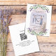 En vit bakgrund som dekoreras med lavender-blommor, eukalyptus grey och en båge ram för ditt foto. Anpassa och namn och detaljer. Tillbaka: Lägg till webbadressen för bröllop i QR-koden för mer information och/eller OSA. 1 lakan = 1 inbjudan utskriven kant till kant.