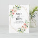 Elegant rosa/persiko-blommigt botaniskt spara datumkortet med en bukett av mjuk pastellfärgad ro, peonier och väteväxter i skuggor av rosa, persikor och grädde med lush vår botaniskt grönt och eukalyptus löv med modern löv. Ett modernt designval som är perfekt för vår och sommartid för rosa under temat bröllop. Hitta mer överensstämmande design och varianter från min "blissweddingpaperie"-butik. Och kontakta mig gärna för ytterligare anpassning eller matchning av objekt.