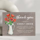 Ett enkelt sätt att tacka dem som stödde dig under din sörjningstid är att använda tackkort på ett platta kort. Ett sött kondoleans-tackkort med en rustik träbakgrund, vallmo och daisy vattenfärgblommor i burk, och en tackmall som är enkel att anpassa.