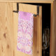 Blommigtar i trädgård i rosa kökshandduk