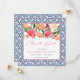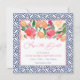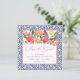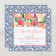 Blommigtar med stora vattenfärger med kumquat och citrussegment paras ihop med en mörk blått och vit ruta gräns och mönster på dessa Spara datumkort.