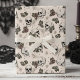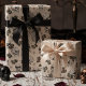 Den här roligten är papper för feminin gotemballering i svart bläck av Nathalie Portet, som innehåller vita döskallar och rosa och kräm ro och spindelnät mot en antikvit bakgrund.