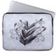 Den gotiska växten laptop sleeve med en blommigt snurrande och blomstrande älskare botaniska konst i svart och lila.