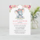 Vattenfärgsinbjudan till Rosa Blommigt Baby Elephant Baby Shower. Omfattar vackert vattenfärgsrosa ros med botaniskt grönt.