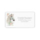 Adressetiketter med en magisk illustration av ett vackert vitt hästhuvud. Omgiven av söta små rosa blommor. Boho elegant vibe för hästälskare.